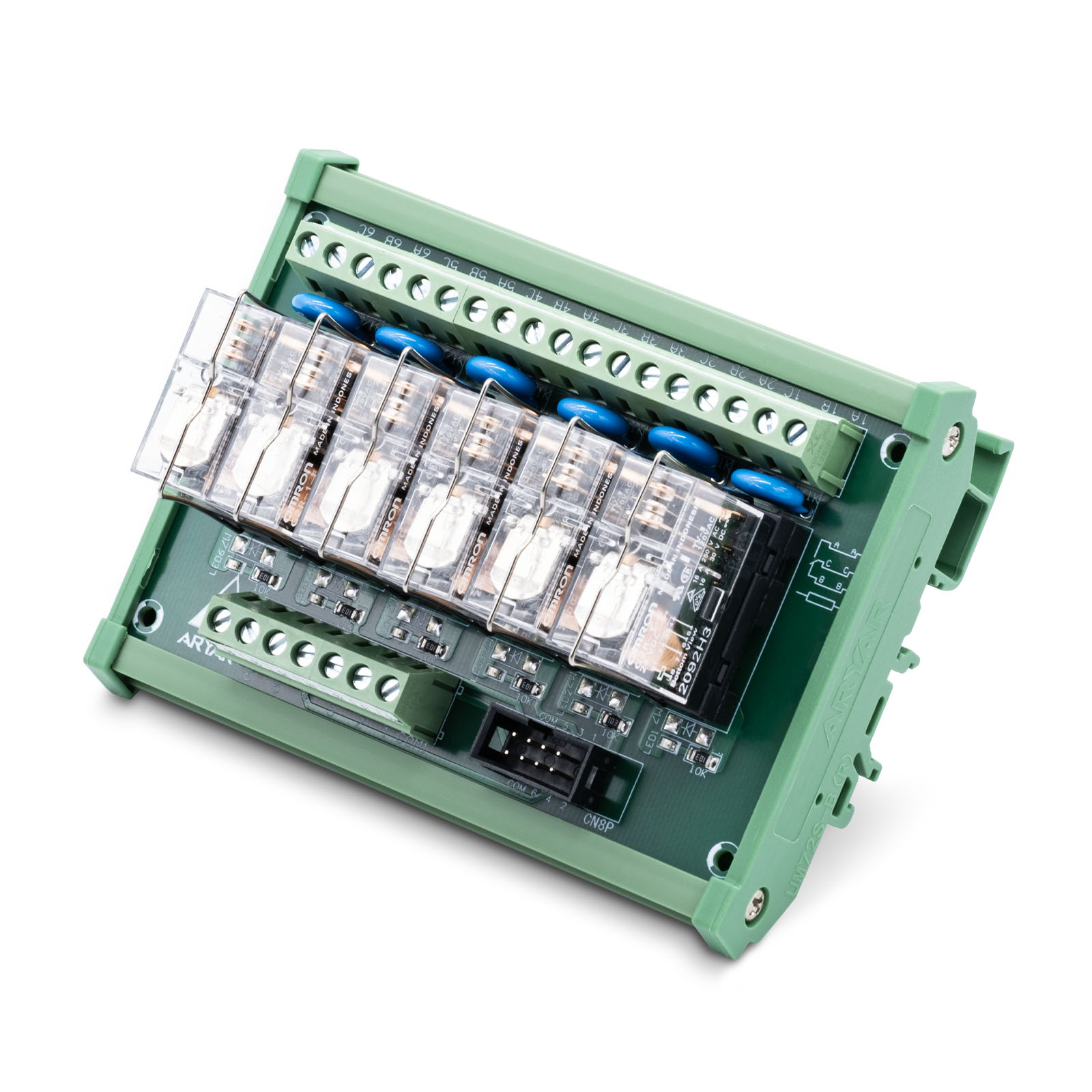 Высококачественные силовые реле Omron G2R-1-E в блоках модели HL-6RD-O1P поддерживают ток до 16 А. Срабатывание по высокому (24 B) и низкому (0 B) уровню. Два выхода на каждый канал: нормально открытый и нормально замкнутый. Имеется крепление на DIN-рейку. Встроенная индикация питания и состояния реле. Оптоизолированные выходы и винтовые клеммы. Блоки реле проще и быстрее устанавливаются, а также занимают меньше места по сравнению снабором традиционных реле. Сами реле Omron G2R-1-E съёмные. Основным применением блоков механических реле является управление такими устройствами, как шпиндель, помпа СОЖ, пылесос для удаления стружки и другими высоковольтными нагрузками.Технические характеристики