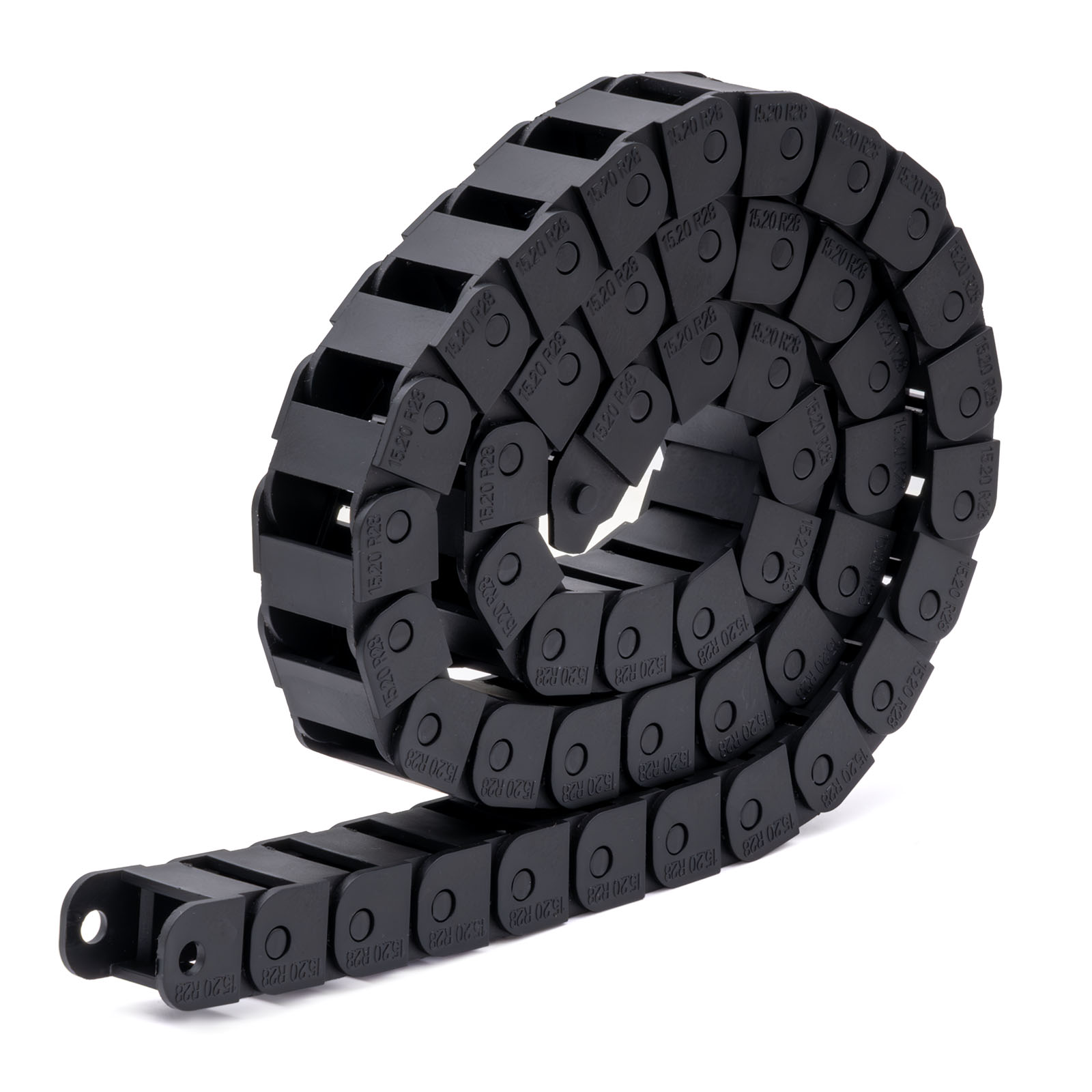 Кабельная цепь(кабель-канал) из негорючего черного нейлона, вид: открытый, внутреннее сечение 15х20 мм.