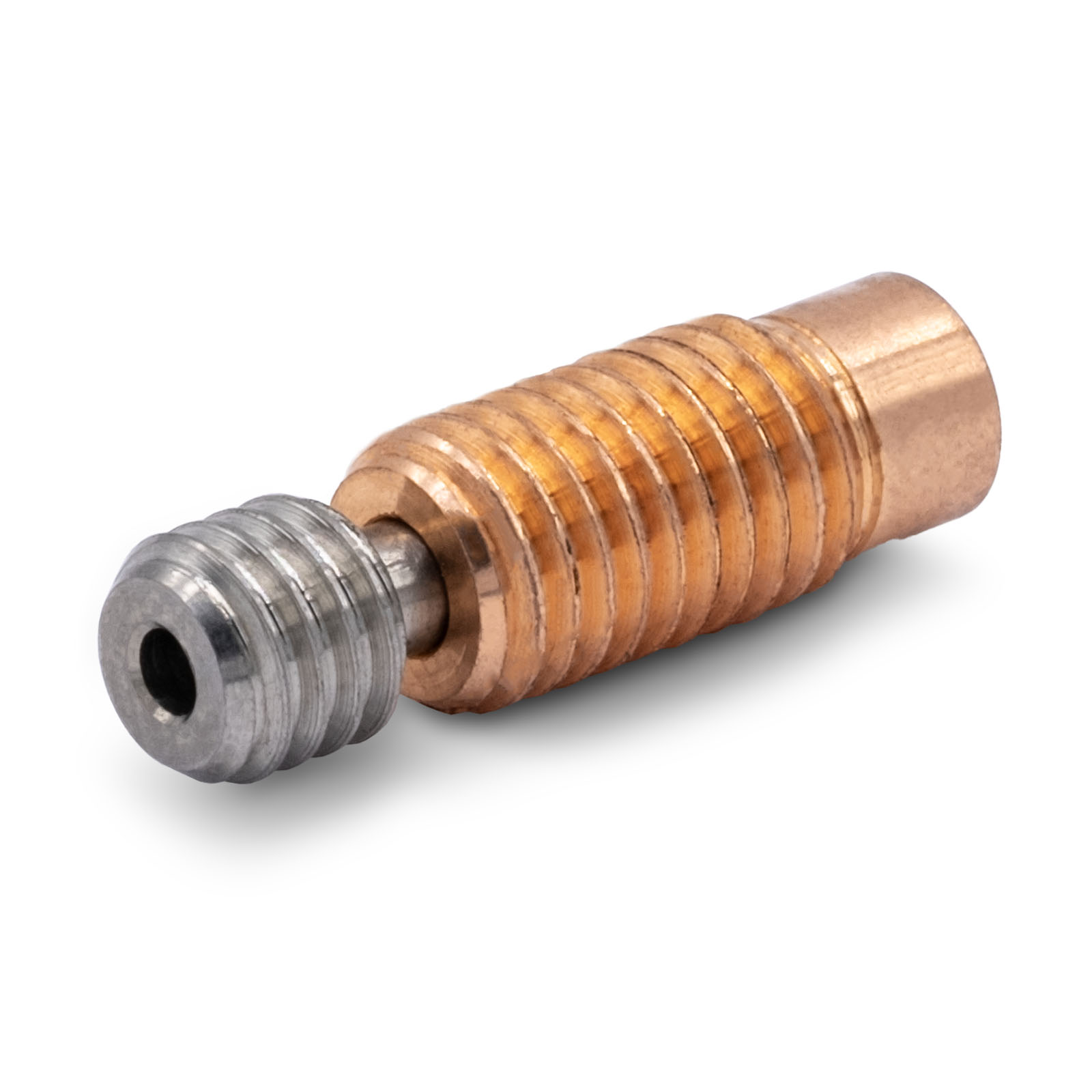 Термобарьер резьбовой, Материал титан (внутренняя часть), медь (внешняя), Диаметр пластикового прутка 1.75 мм, Длина 22 мм