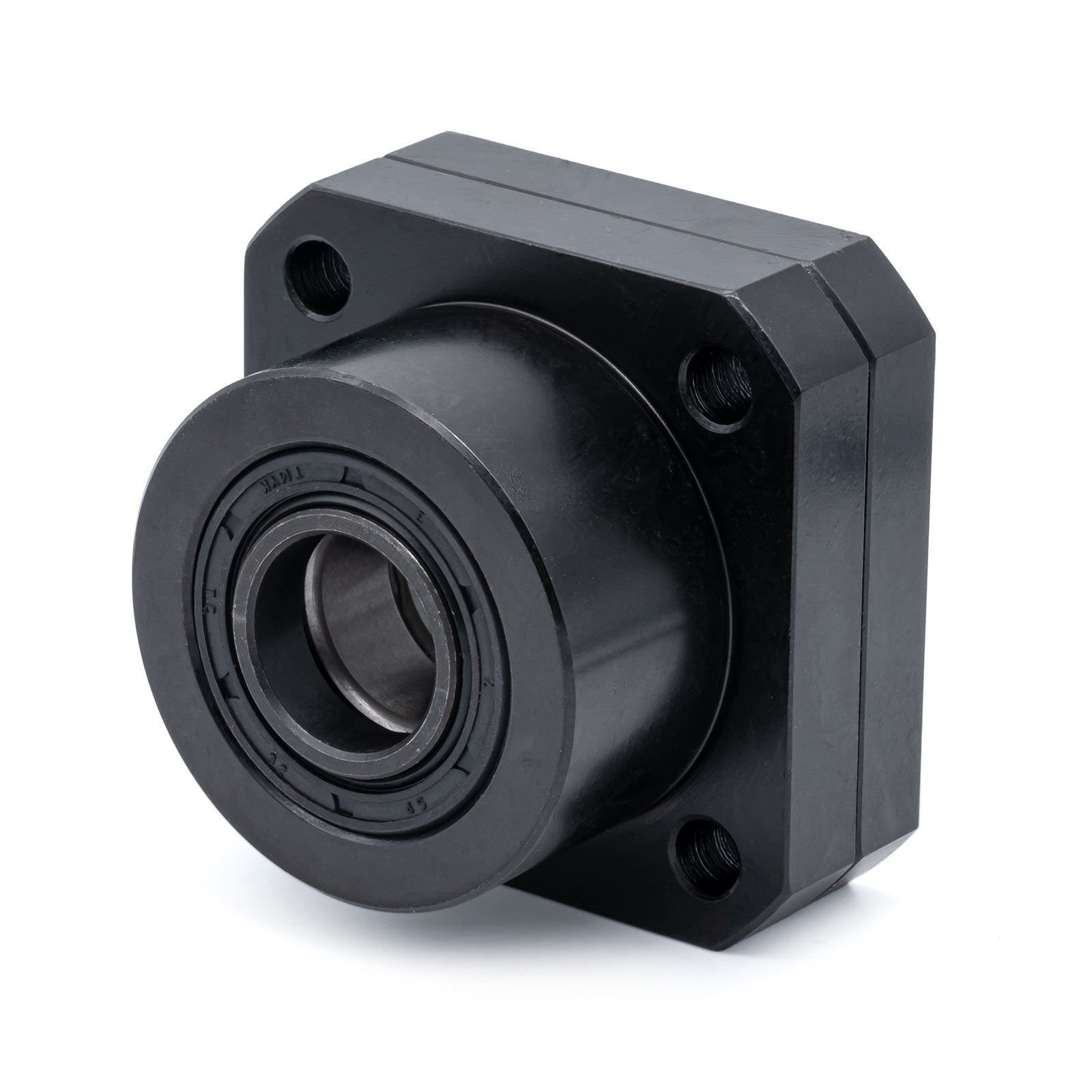 Опора винта фиксирующая. Диаметр внутренней обоймы 25 мм. Крепление фланцевое - винт установливается перпендикулярно плоскости монтажа. В фиксирующих опорах установлены 2 радиальных подшипника, что позволяет жестко фиксировать винт в радиальном направлении и создавать натяг в осевом. Опоры серии FK - фиксирующего типа.