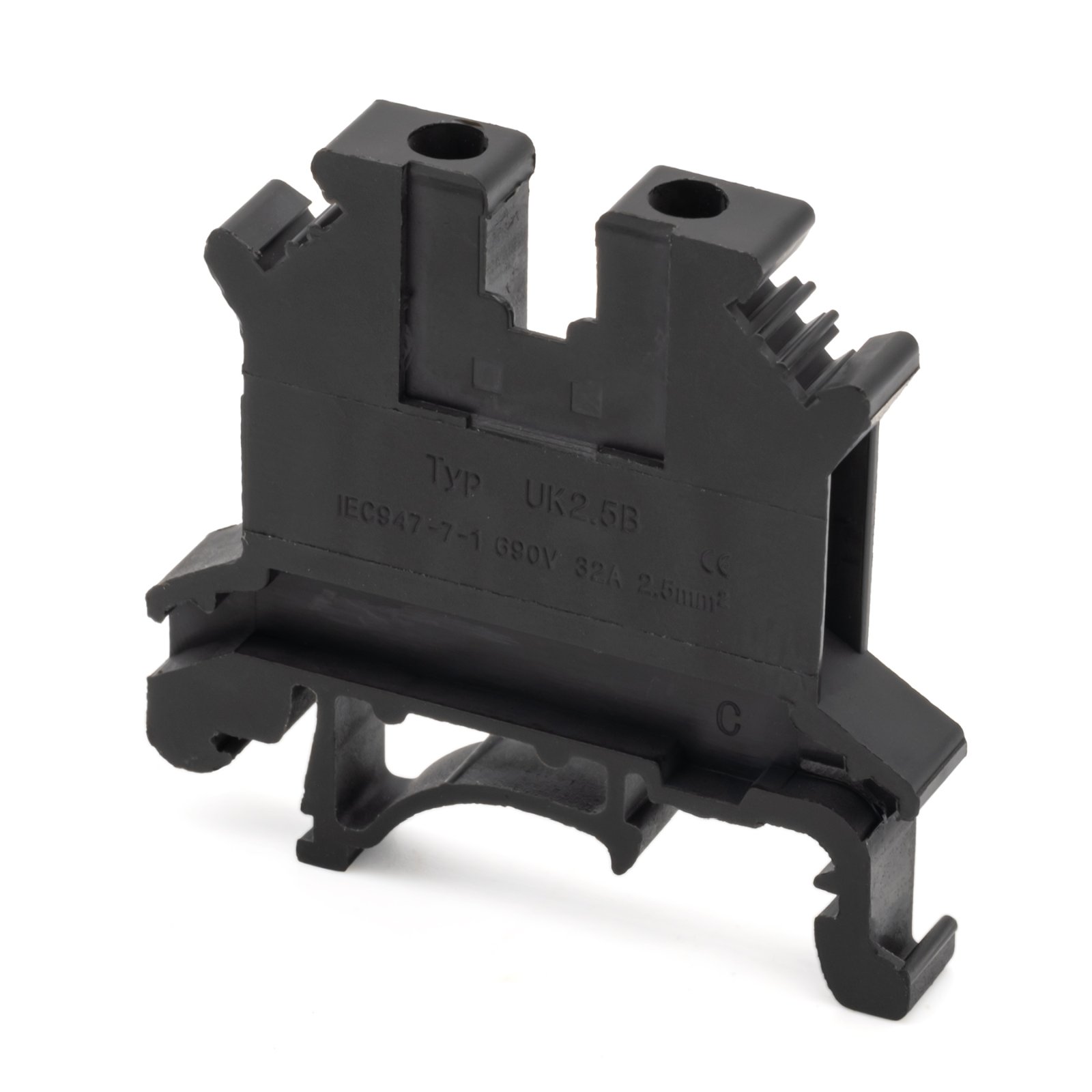 Клеммная колодка на DIN-рейку, Ярусов 1, Точек подключения 2, Сечение проводов 2.5 mm2, Контакты Винтовые, Цвет черный
